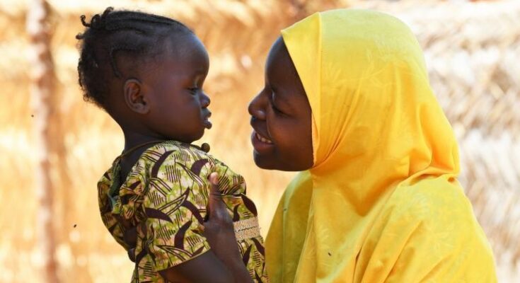 A mother cuddling her baby in Soki village, central Niger.©UNICEF/Dejongh